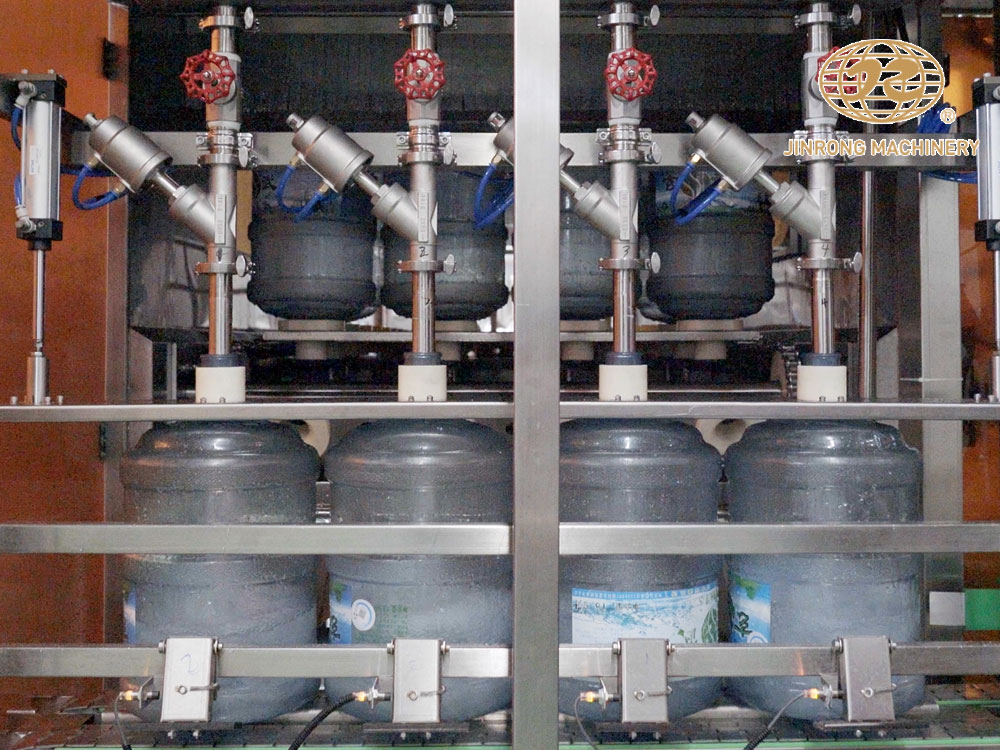 桶裝水灌裝線設(shè)備主要由清洗,灌裝,壓蓋三部分組成,主要應(yīng)用于3加侖和5加侖飲用水的一體化生產(chǎn)。大桶水灌裝生產(chǎn)線由拔蓋機(jī)、內(nèi)外刷桶機(jī)、灌裝機(jī)、壓蓋機(jī)、套標(biāo)機(jī)、貼標(biāo)機(jī)、噴碼機(jī)、套袋機(jī)等組成。